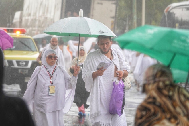 - Heavy rain pours down on Hajj pilgrims at Arafat