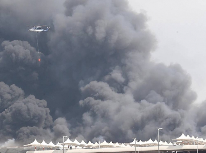 The security forces used choppers equipped with water tankers to quell the blaze.