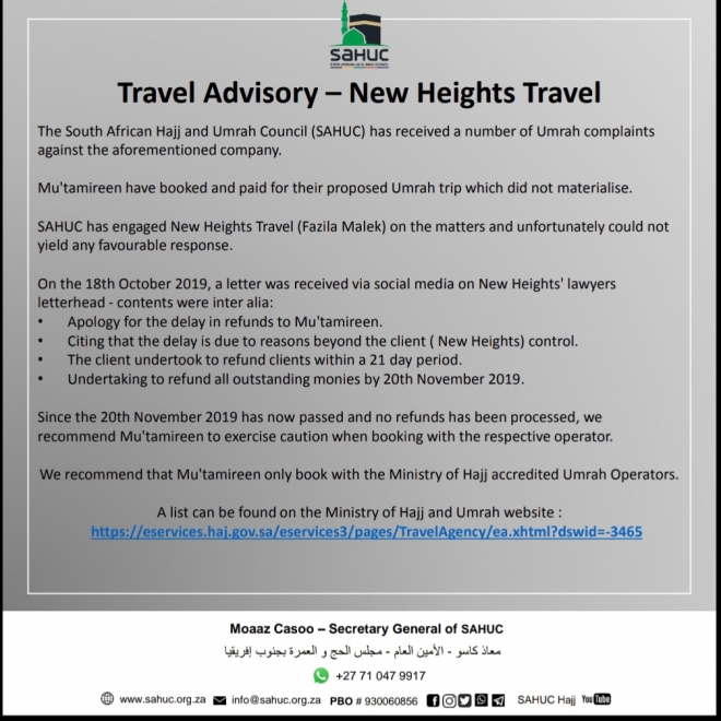 Source: https://sahuc.org.za/announcements/travel-advisory-new-heights-travel/