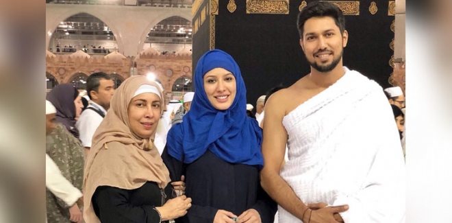 The Tamgha-e-Imtiaz recipient took to social media to share her experience. She posted a picture on Instagram with her mother Rukhsar Hayat and brother Danish Hayat, standing infront of the Kaabah in Makkah.