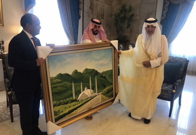 Majid presented a painting of Islamabad’s Faisal Mosque, named after King Faisal, to the Makkah governor.