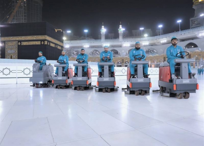 Earlier reports in a section of the press said a 330-member sanitizing team is engaged in cleaning, sanitizing and incensing the Mataf and other areas of the Grand Mosque, Saudi Press Agency (SPA) cited the presidency as saying Tuesday.