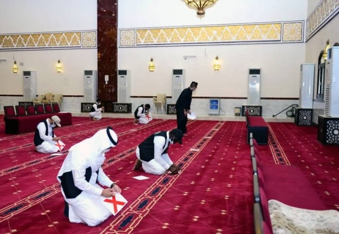 These included placing stickers on the carpets to ensure abidance by the mandatory social distancing between worshipers and collecting the copies of Holy Qur’an from the shelves. All these come within the sphere of an integrated program to ensure implementation of the precautionary and preventive measures to curb the spread of the COVID-19 virus.