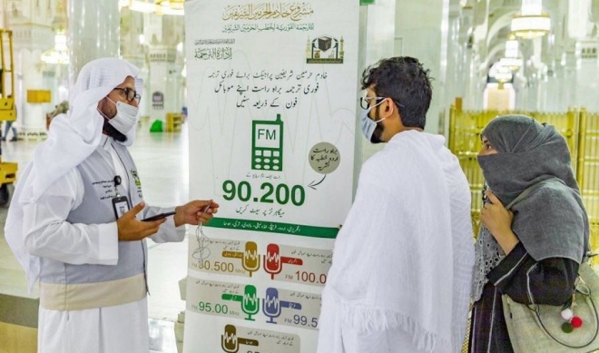 Translators are found in field locations in all the mosque’s entrances and internal hallways, as well as locations where non-Arabs gather, which vary from time to time and are determined based on studies.
