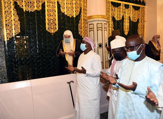 President Umaro Sissoco Embalo of the Republic of Guinea-Bissau visited today the Prophet's Mosque in Madinah, where he prayed and greeted the Prophet, peace be upon him, and his two companions. Upon his arrival, he was received by Sheikh Ali Al-Hudhaifi, Imam of the Prophet's Mosque and a number of officials.