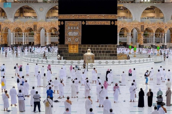 The General Presidency for the Affairs of the Two Holy Mosques and other concerned authorities managed the entry of pilgrims to the Grand Mosque through specific doors for each group of pilgrims under strict coronavirus preventive protocols.
