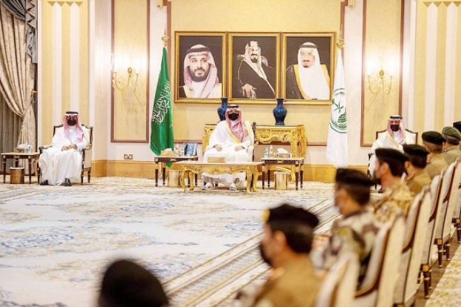 MINA — Minister of Interior Prince Abdulaziz Bin Saud Bin Naif, who is also chairman of the Supreme Hajj Committee, offered the greetings of Custodian of the Two Holy Mosques King Salman and Crown Prince Muhammad Bin Salman to the security personnel from the Ministry of Interior and the Presidency of State Security who participated in implementing Hajj security plans on the occasion of Eid Al-Adha, and the success of the Hajj security plans.