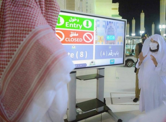 Source: https://saudigazette.com.sa/article/610496/SAUDI-ARABIA/Main-Door-Screens-project-launched-in-Prophets-Mosque