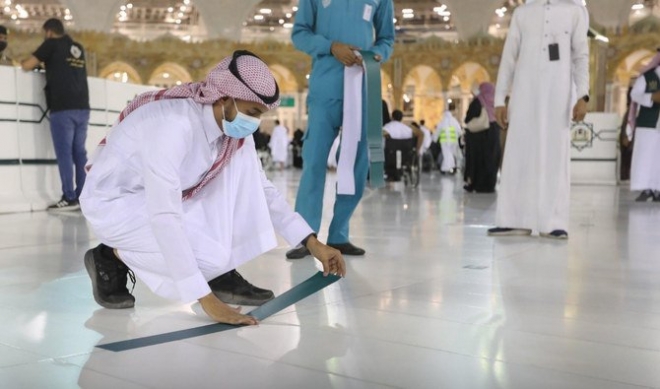The presidency arranged social distancing stickers for the 25 new paths around the Tawaf (circumambulation) area to keep pace with the preparations for the Umrah season. It also allocated paths for people with disabilities in accordance with the precautionary measures.