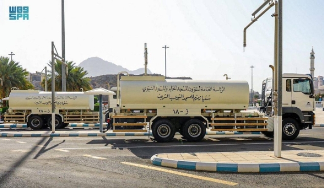 This transfer was done after ensuring their safety and the safety of their drivers and guaranteeing that the tankers could not be opened but through the specialized employee at the General Directorate for the Affairs of the Prophet's Holy Mosque.
