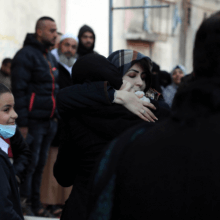 A group of Palestinian pilgrims left the besieged Gaza Strip on Tuesday to perform Umrah, the Muslim pilgrimage to Mecca.