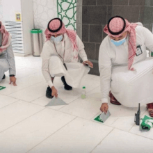Workers have begun removing social distancing stickers from indoor and outdoor corridors, squares and facilities of the Grand Mosque.