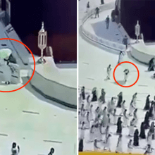 The CCTV cameras recorded the moment when the pilgrim asked the security man for a cap to cover his head.