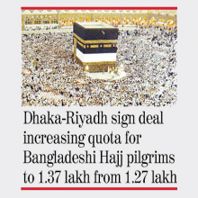 Both Bangladesh and Saudi Arabia have taken steps to ease systems so that Bangladeshi Hajj pilgrims can perform their pilgrimage next year without any hassles. The Saudi government has increased the quota for Bangladeshi Hajj pilgrims by 10,000.