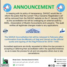 The South African Hajj and Umrah Council (Sahuc) says in keeping with its policy of transparency, the current Hajj registration list will be removed from its website on the 21st of January for audit purposes.