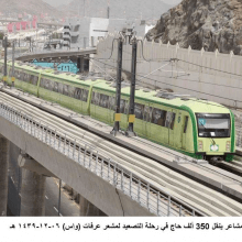 The Mashair Train will transport as many as 350,000 pilgrims via 1,000 trips in a week. It will transport a group of about 72,000 pilgrims an hour.