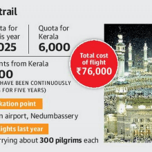 “The pilgrims from Kerala do not like the idea of going all the way to Mumbai to board a ship to Saudi Arabia even if the cost comes down by ₹40,000. Our pilgrims favour direct flights though the airfare now is ₹76,000,” Thodiyoor Muhammed Kunju Moulavi, chairman, Haj Committee, told The Hinduon Wednesday.