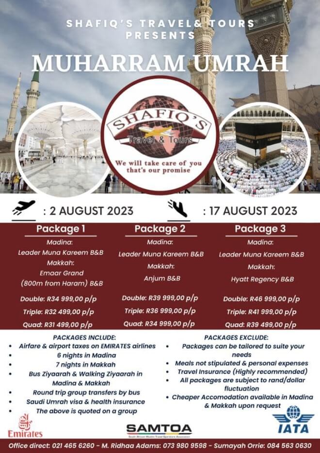 Disclaimer: Kindly check and confirm details with operators before booking. Package Information has been uploaded onto our website as received, and may have changed. Hotel Information has been sourced from websites like Google Maps, Wikimapia and Hotels.com. If any of the information is incorrect, kindly let us know via email: info@hajjumrahinfo.co.za - Shukran
