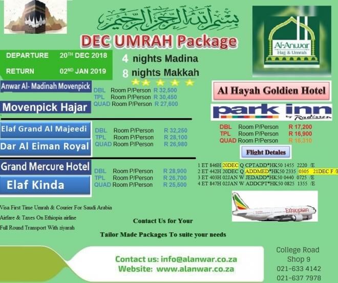Disclaimer: Kindly check and confirm details with operators before booking. Package Information has been uploaded onto our website as received, and may have changed. Hotel Information has been sourced from websites like Google Maps, Wikimapia and Hotels.com. If any of the information is incorrect, kindly let us know via email: info@hajjumrahinfo.co.za - Shukran