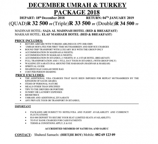 Source: http://www.shaheedhajj.co.za/umrah2018.html