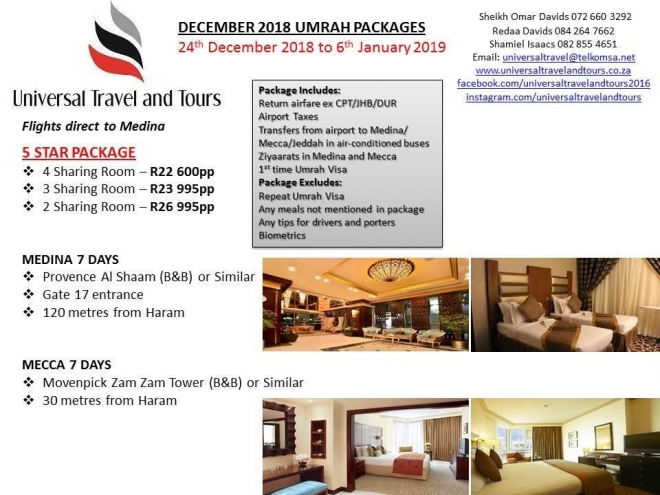 Universal Travel - December 2018 Umrah - 5 Star Package