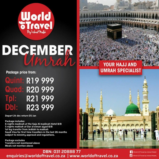Disclaimer: Kindly check and confirm details with operators before booking. Package Information has been uploaded onto our website as received, and may have changed. Hotel Information has been sourced from websites like Google Maps, Wikimapia and Hotels.com. If any of the information is incorrect, kindly let us know via email: info@hajjumrahinfo.co.za - Shukran
