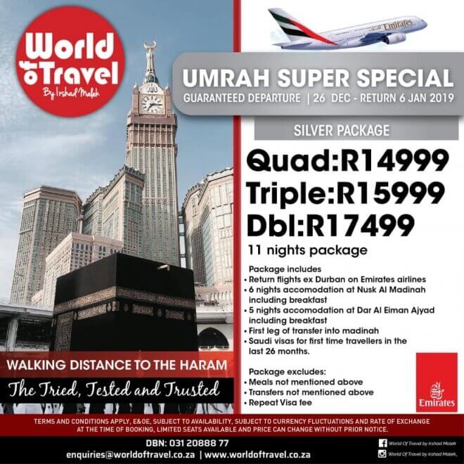 Disclaimer: Kindly check and confirm details with operators before booking. Package Information has been uploaded onto our website as received, and may have changed. Hotel Information has been sourced from websites like Google Maps, Wikimapia and Hotels.com. If any of the information is incorrect, kindly let us know via email: info@hajjumrahinfo.co.za - Shukran