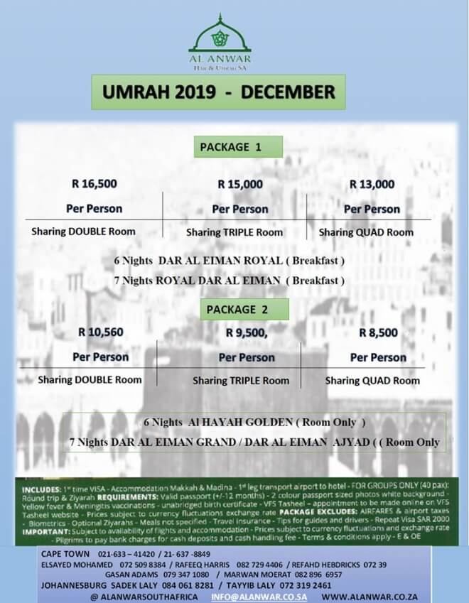 Disclaimer: Kindly check and confirm details with operators before booking. Package Information has been uploaded onto our website as received, and may have changed. Hotel Information has been sourced from websites like Google Maps, Wikimapia and Hotels.com. If any of the information is incorrect, kindly let us know via email: info@hajjumrahinfo.co.za - Shukran