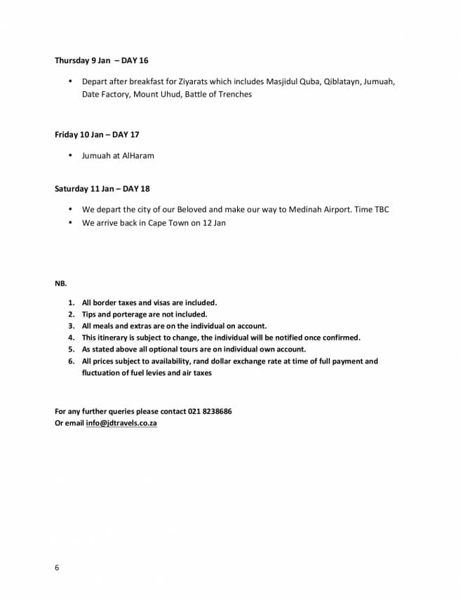 Disclaimer: Kindly check and confirm details with operators before booking. Package Information has been uploaded onto our website as received, and may have changed. Hotel Information has been sourced from websites like Google Maps, Wikimapia and Hotels.com. If any of the information is incorrect, kindly let us know via email: info@hajjumrahinfo.co.za - Shukran