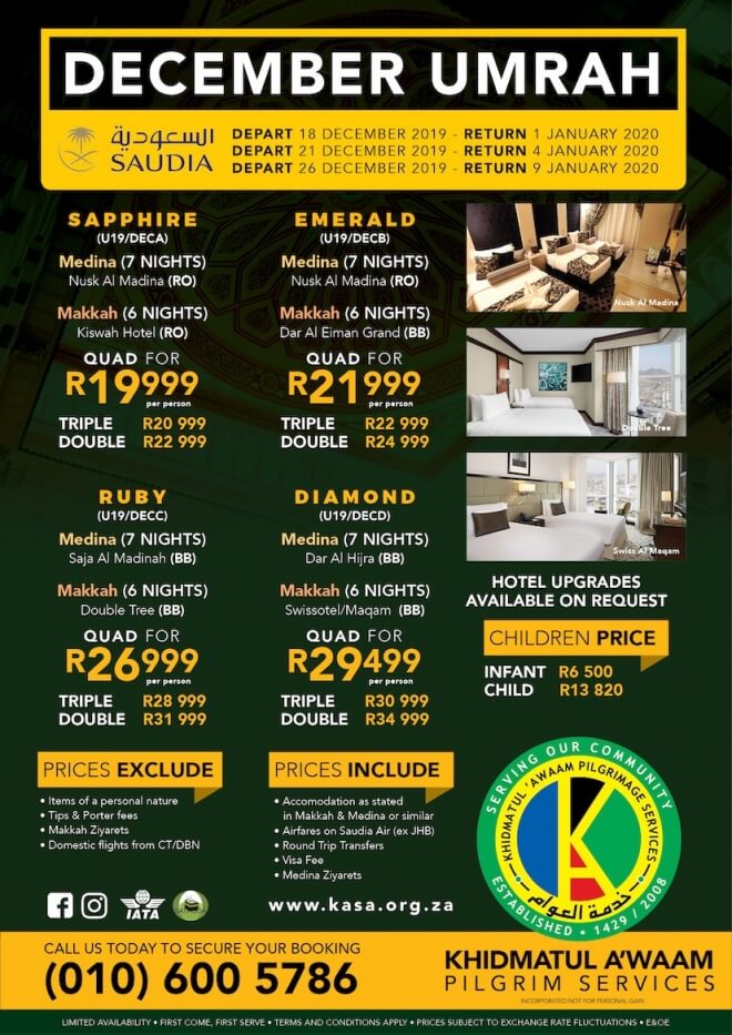 Disclaimer: Kindly check and confirm details with operators before booking. Package Information has been uploaded onto our website as received, and may have changed. Hotel Information has been sourced from websites like Google Maps, Wikimapia and Hotels.com. If any of the information is incorrect, kindly let us know via email: info@hajjumrahinfo.co.za - Shukran