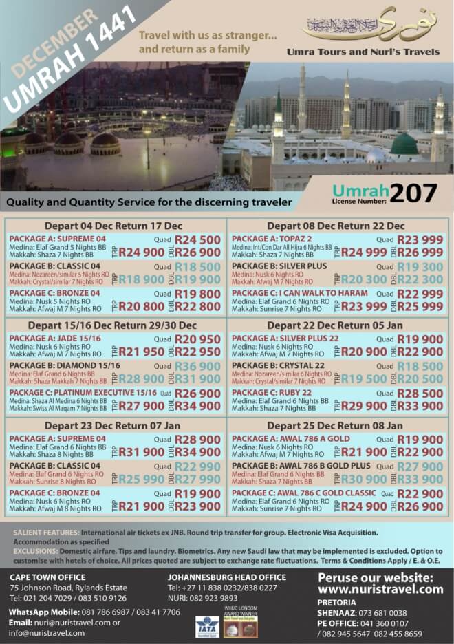 Disclaimer: Kindly check and confirm details with operators before booking. Package Information has been uploaded onto our website as received, and may have changed. Hotel Information has been sourced from websites like Google Maps, Wikimapia and Hotels.com. If any of the information is incorrect, kindly let us know via email: info@hajjumrahinfo.co.za - Shukran