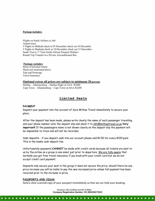 Disclaimer: Kindly check and confirm details with operators before booking. Package Information has been uploaded onto our website as received, and may have changed. Hotel Information has been sourced from websites like Google Maps, Wikimapia and Hotels.com. If any of the information is incorrect, kindly let us know via email: info@hajjumrahinfo.co.za - Shukran
