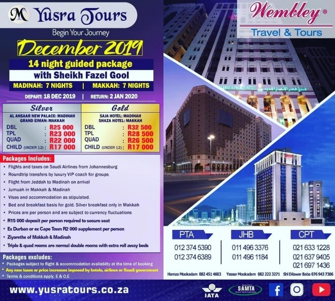 Disclaimer: Kindly check and confirm details with operators before booking. Package Information has been uploaded onto our website as received, and may have changed. Hotel Information has been sourced from websites like Google Maps, Wikimapia and Hotels.com. If any of the information is incorrect, kindly let us know via email: info@hajjumrahinfo.co.za - Shukran
