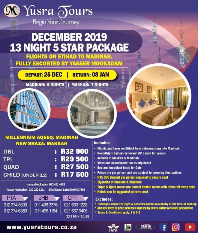 Disclaimer: Kindly check and confirm details with operators before booking. Package Information has been uploaded onto our website as received, and may have changed. Hotel Information has been sourced from websites like Google Maps, Wikimapia and Hotels.com. If any of the information is incorrect, kindly let us know via email: info@hajjumrahinfo.co.za - Shukran