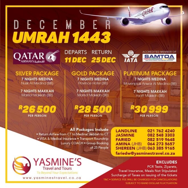 Disclaimer: Kindly check and confirm details with operators before booking. Package Information has been uploaded onto our website as received, and may have changed. Hotel Information has been sourced from websites like Google Maps, Wikimapia and Hotels.com. If any of the information is incorrect, kindly let us know via email: info@hajjumrahinfo.co.za - Shukran