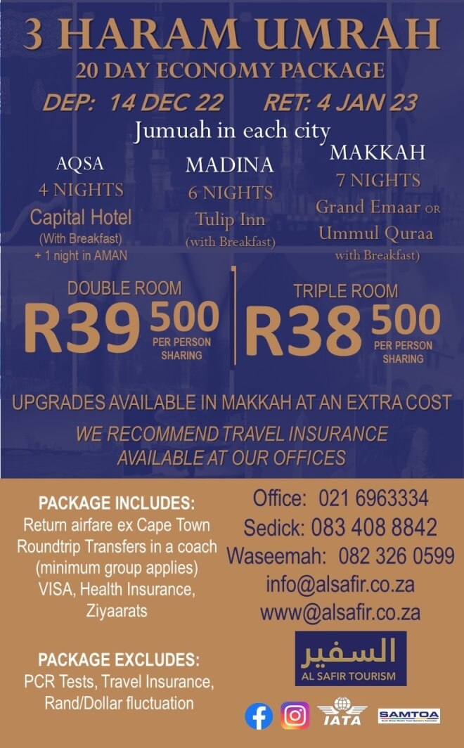 Disclaimer: Kindly check and confirm details with operators before booking. Package Information has been uploaded onto our website as received, and may have changed. Hotel Information has been sourced from websites like Google Maps, Wikimapia and Hotels.com. If any of the information is incorrect, kindly let us know via email: info@hajjumrahinfo.co.za - Shukran