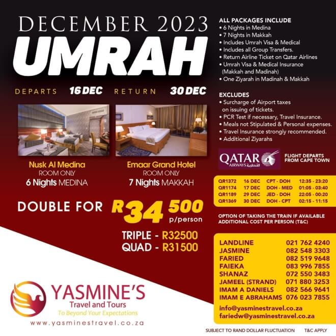 Disclaimer: Kindly check and confirm details with operators before booking. Package Information has been uploaded onto our website as received, and may have changed. Hotel Information has been sourced from websites like Google Maps, Wikimapia and Hotels.com. If any of the information is incorrect, kindly let us know via email: info@hajjumrahinfo.co.za - Shukran