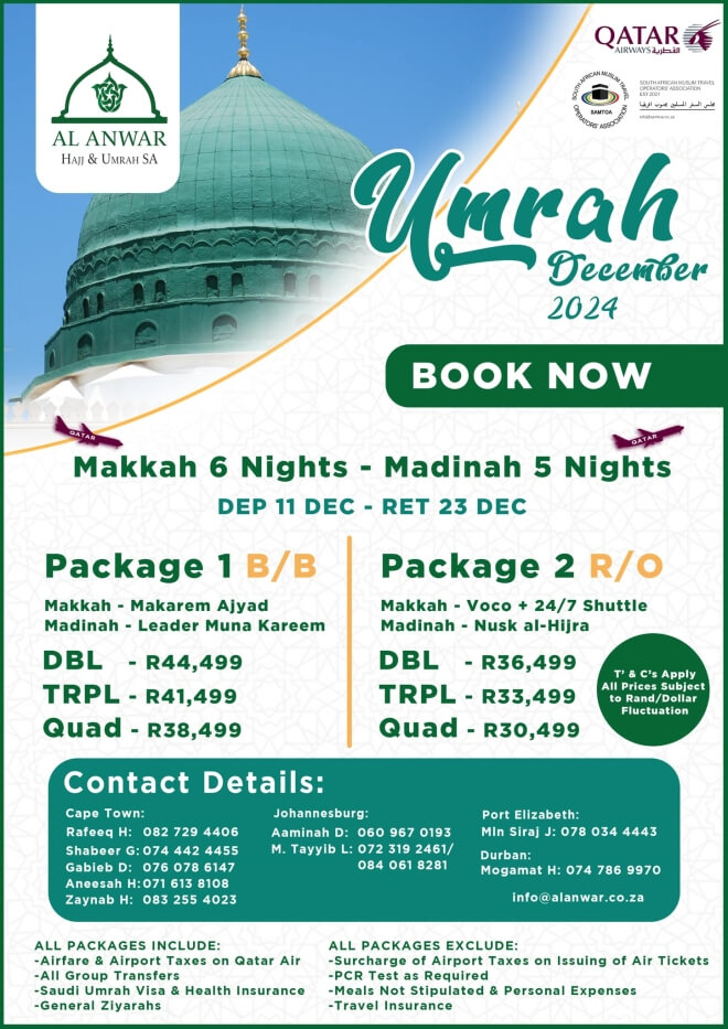 Disclaimer: Kindly check and confirm details with operators before booking. Package Information has been uploaded onto our website as received, and may have changed. Hotel Information has been sourced from websites like Google Maps, Wikimapia and Hotels.com. If any of the information is incorrect, kindly let us know via email: info@hajjumrahinfo.co.za - Shukran