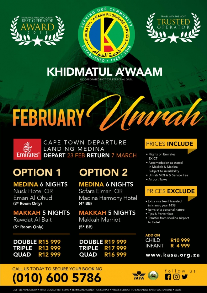Khidmatul Awaam - February Umrah ex CPT - Option 1