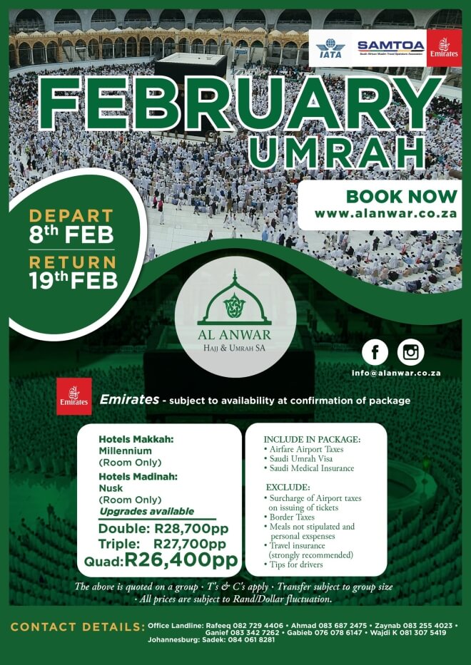 Disclaimer: Kindly check and confirm details with operators before booking. Package Information has been uploaded onto our website as received, and may have changed. Hotel Information has been sourced from websites like Google Maps, Wikimapia and Hotels.com. If any of the information is incorrect, kindly let us know via email: info@hajjumrahinfo.co.za - Shukran