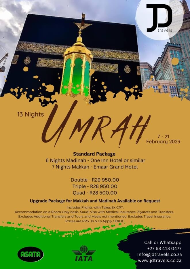 Disclaimer: Kindly check and confirm details with operators before booking. Package Information has been uploaded onto our website as received, and may have changed. Hotel Information has been sourced from websites like Google Maps, Wikimapia and Hotels.com. If any of the information is incorrect, kindly let us know via email: info@hajjumrahinfo.co.za - Shukran