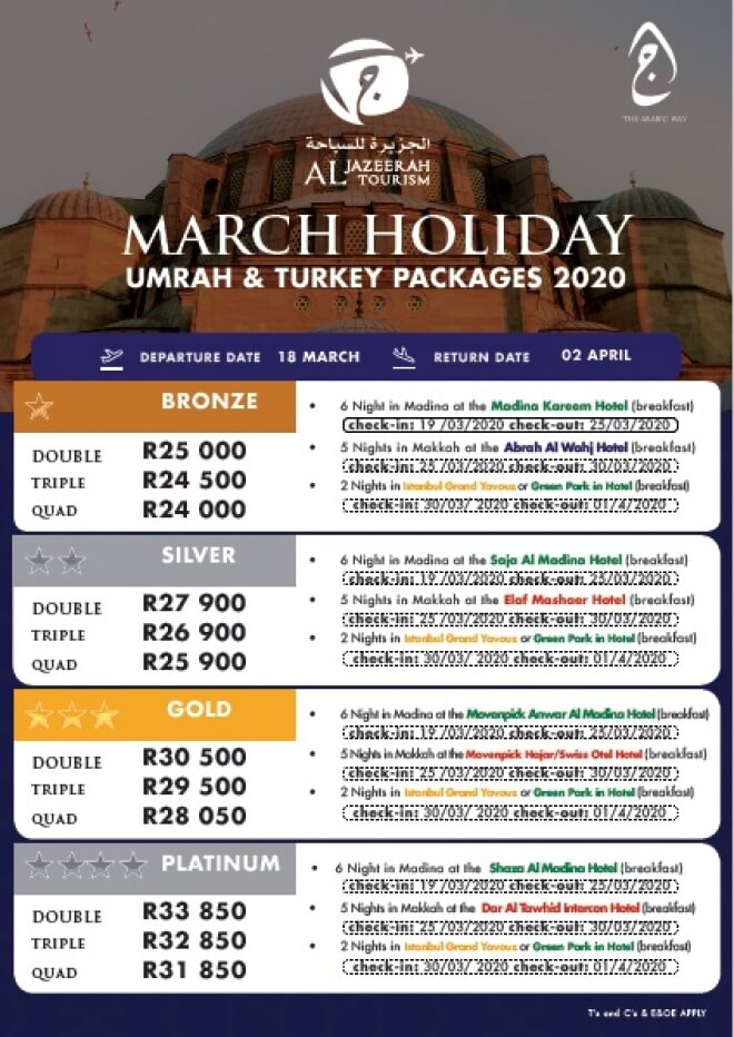 Al Jazeerah Tourism - March Holiday Umrah & Turkey Packages - Bronze