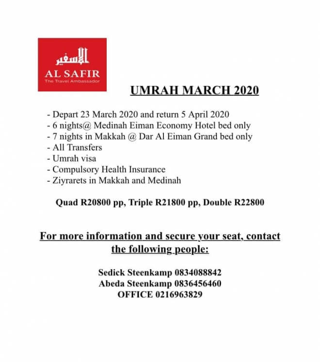Disclaimer: Kindly check and confirm details with operators before booking. Package Information has been uploaded onto our website as received, and may have changed. Hotel Information has been sourced from websites like Google Maps, Wikimapia and Hotels.com. If any of the information is incorrect, kindly let us know via email: info@hajjumrahinfo.co.za - Shukran