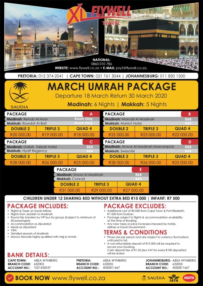 Source: http://flywell.co.za/umrahpackages/march-2020-umrah-package