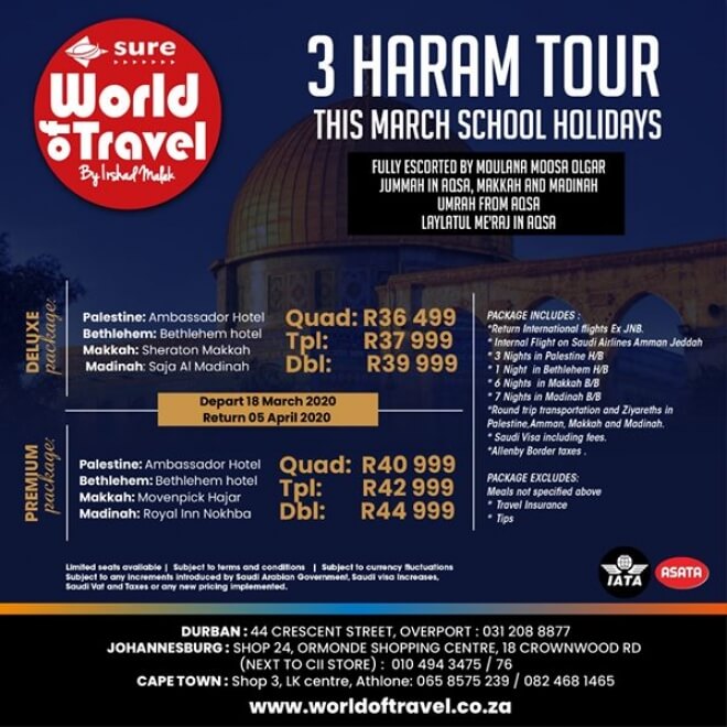 World of Travel - 3 Haram Tour (March School Holidays) DELUXE PACKAGE - Includes Bethlehem in Aqsa