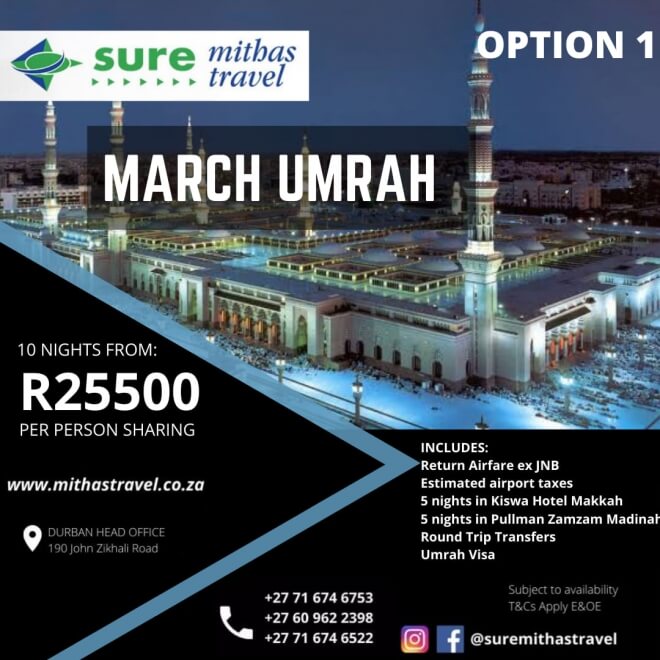 Disclaimer: Kindly check and confirm details with operators before booking. Package Information has been uploaded onto our website as received, and may have changed. Hotel Information has been sourced from websites like Google Maps, Wikimapia and Hotels.com. If any of the information is incorrect, kindly let us know via email: info@hajjumrahinfo.co.za - Shukran