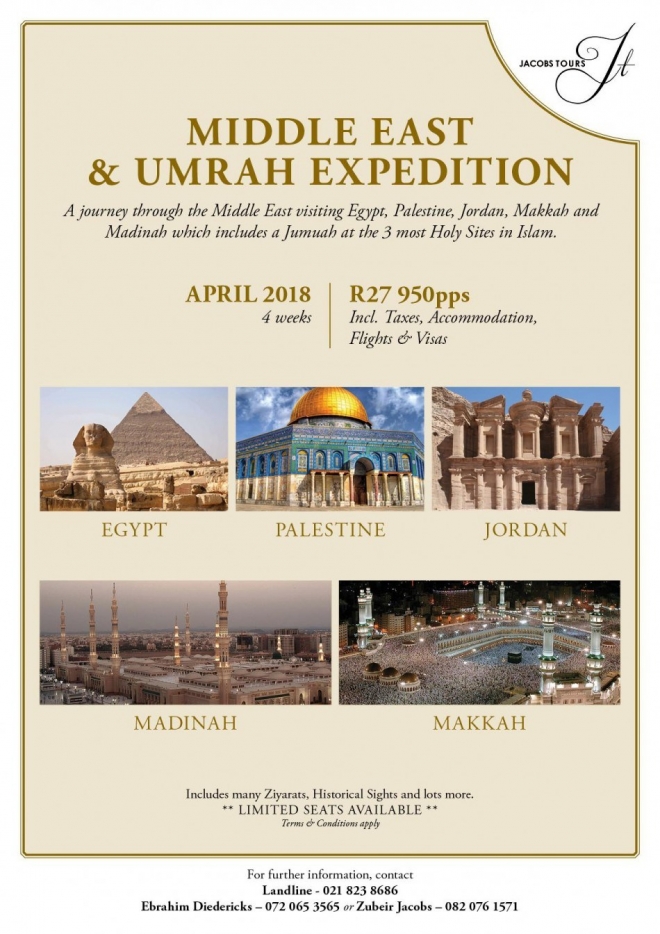 A JOURNEY THROUGH THE MIDDLE EAST VIA EGYPT, PALESTINE, JORDAN, MADINAH AND MAKKAH WHICH INCLUDES JUMUAH AT THE 3 HARAMS.