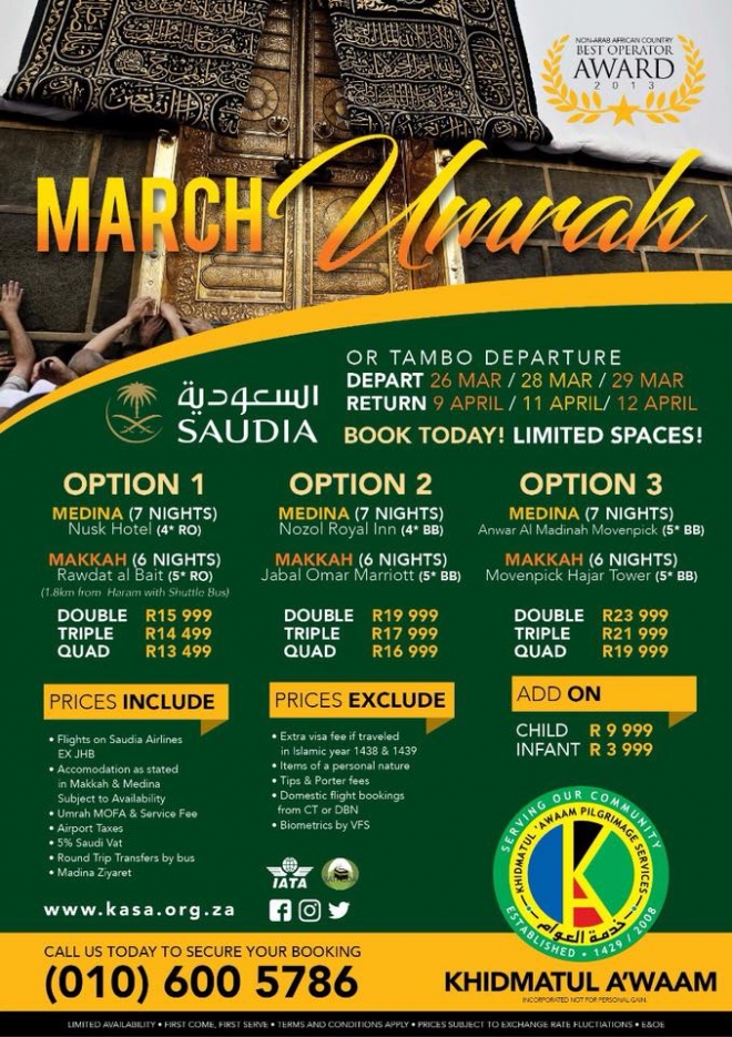 Khidmatul Awaam - March 2018 Umrah - Option 2