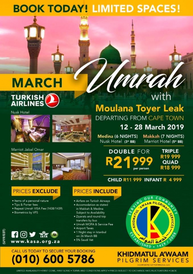 Disclaimer: Kindly check and confirm details with operators before booking. Package Information has been uploaded onto our website as received, and may have changed. Hotel Information has been sourced from websites like Google Maps, Wikimapia and Hotels.com. If any of the information is incorrect, kindly let us know via email: info@hajjumrahinfo.co.za - Shukran