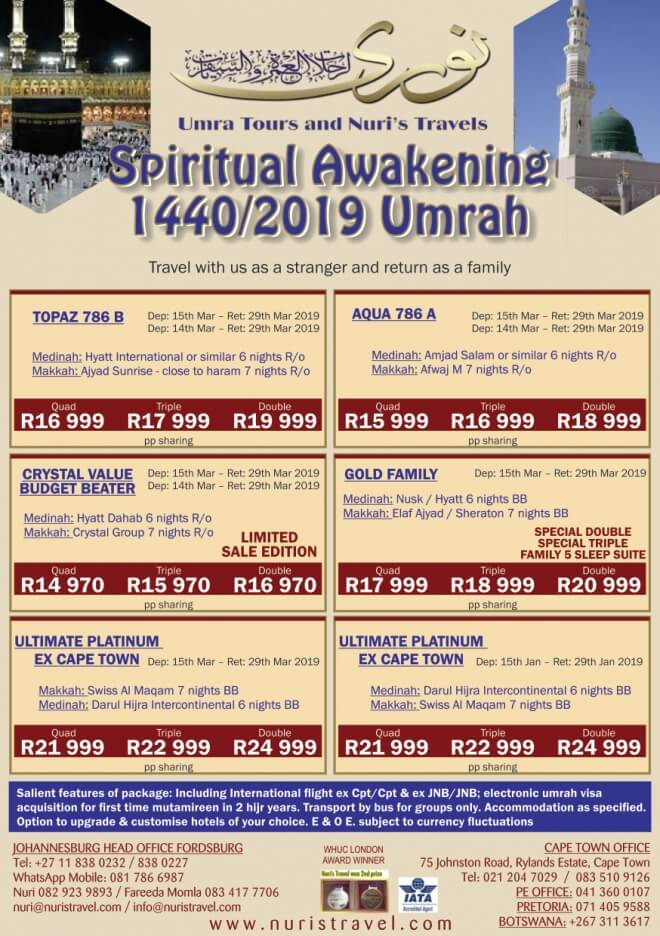 Disclaimer: Kindly check and confirm details with operators before booking. Package Information has been uploaded onto our website as received, and may have changed. Hotel Information has been sourced from websites like Google Maps, Wikimapia and Hotels.com. If any of the information is incorrect, kindly let us know via email: info@hajjumrahinfo.co.za - Shukran